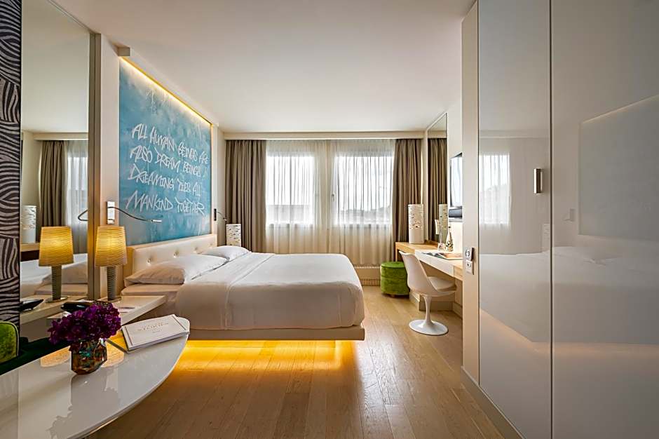 Spacious rooms with a 46-inch flat-screen HD TV, a multi-media plug, a mini-bar, free tea and a Nespresso coffee maker with free capsules. There is a loft-style bathroom with bathtub, spa products, a hairdryer, a make-up mirror, bathrobes and slippers.