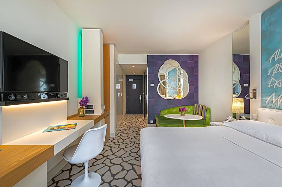 Rooms with a 40-inch flat-screen HD TV, a multi-media plug, a mini-bar, free coffee, tea, and a bathroom with bathtub or a walk-in shower, a hairdryer, a make-up mirror, and slippers.
